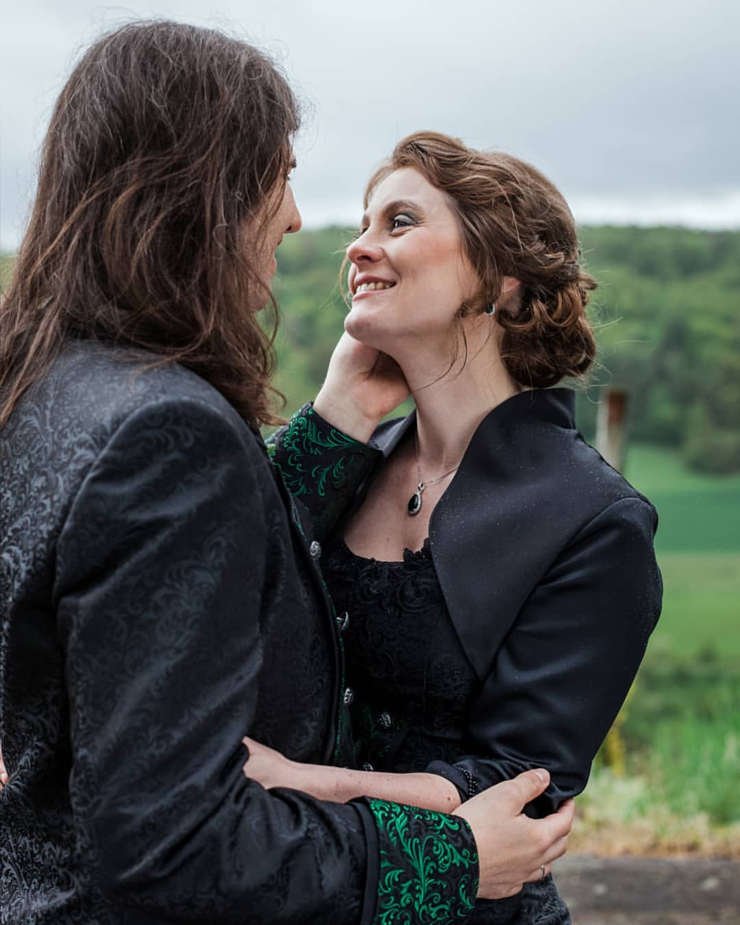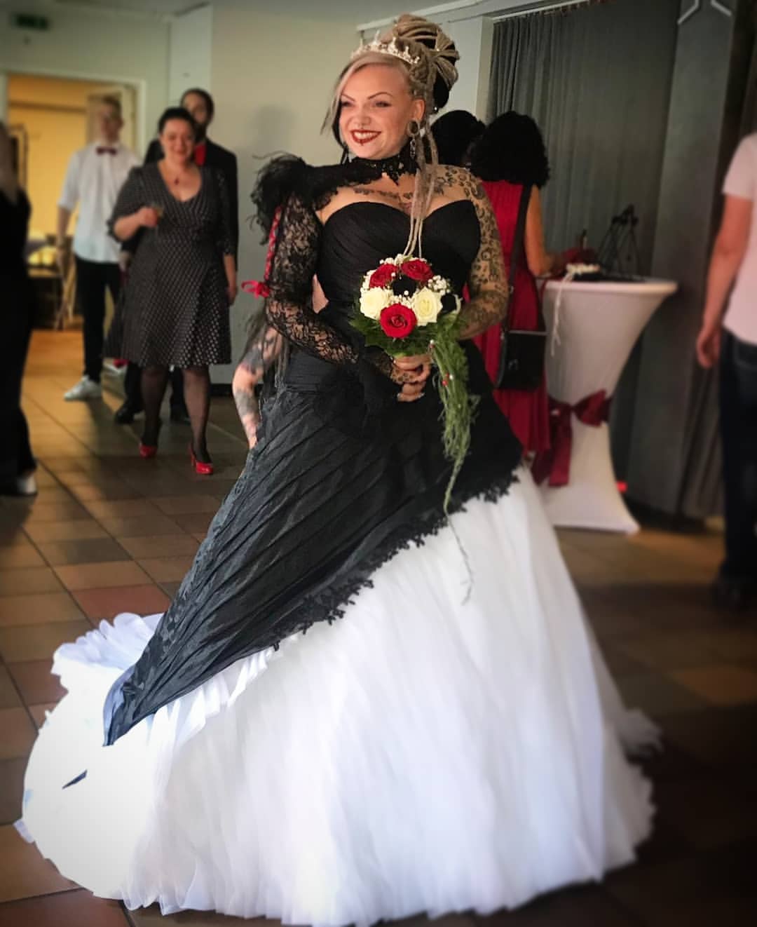 Wie sieht so ein extravagantes Brautkleid an mir aus, die ich nicht das Model bin sondern ein ganz eigener Mensch? Ich als Bräutigam wünsche mir nicht einfach Statist zu sein sondern so das wir gemeinsam ein Hochzeitsbild ergebn, wo kann ich da schauen? Besuche gern unsere Social Media Kanäle für mehr Geschichten rund um "Schwarze Brautkleiderträume, Hochzeits-Tipps und Geschichten hinter der Mode.