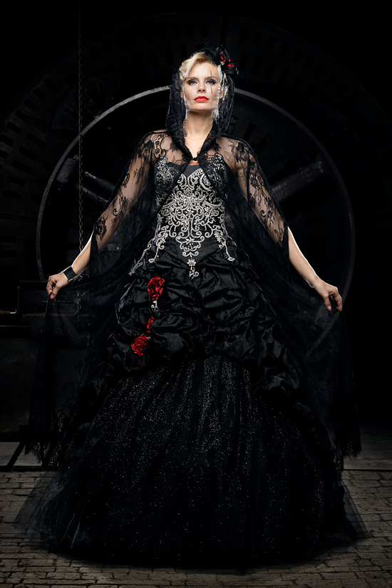 Schwarze Brautmode, extravagante Hochzeitskleider und Steampunk Brautkleider-Träume von